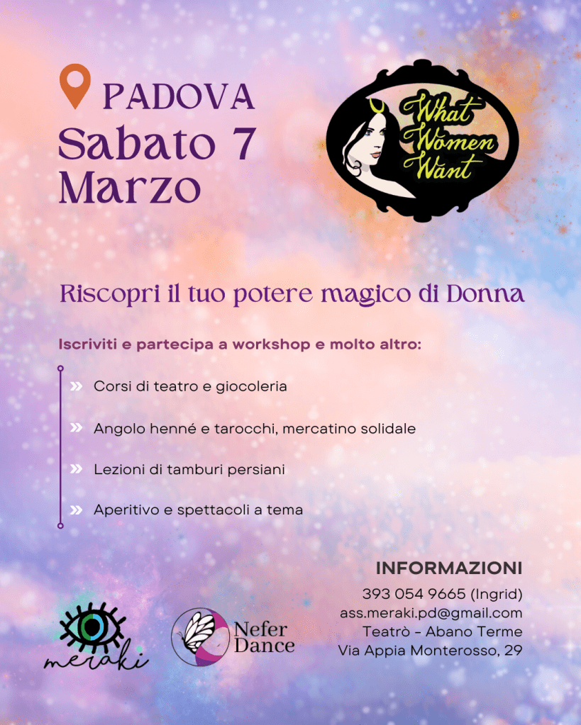 Sabato 7 Marzo a Padova c’è il WWW – What Women Want, l’evento annuale dell’Associazione Culturale Meraki dedicato alle Donne ![]()